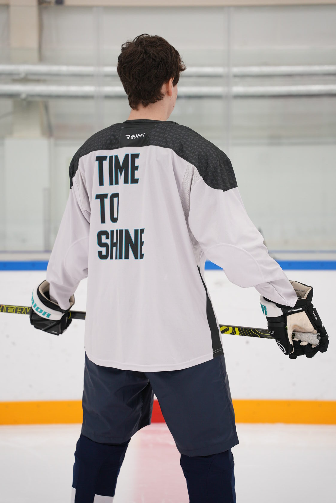На спине надпись "Time To Shine", что в переводе означает "время сиять".